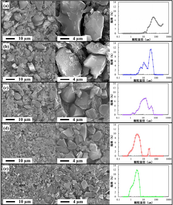 圖2:使用球磨的活性炭雙電層電容器(EDLC)電極的表面形態及其粒徑分布。